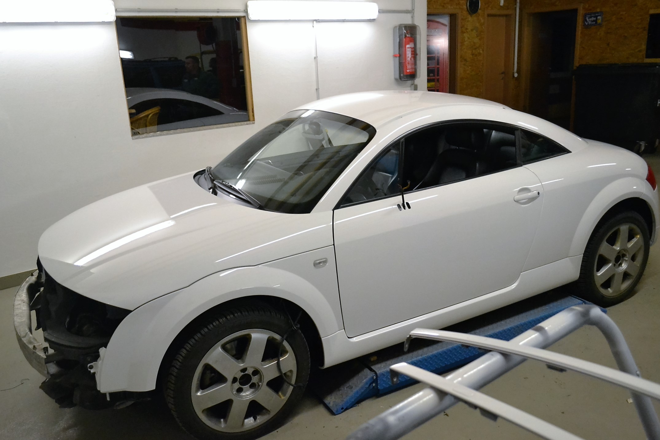Dieses Fahrzeug wurde von Schwarz in Weiß umlackiert und dabei einige Details in Rot veredelt.